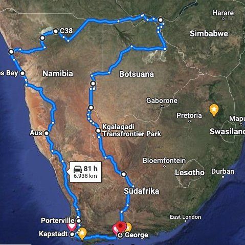 nach Swakopmund Walfish Bay und Hentjes Bay, Skeleton coast-Etosha pan-Caprivi strip-Victoria falls-Ghanzi-Kalahari-Kgalagadi Transfrontier Park-Cape town